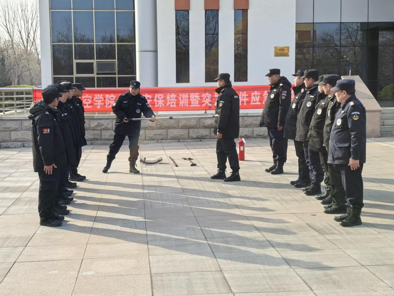 在培训中,教官对防暴器材和消防器材的使用方法、应急响应机制等内容进行详细讲解,参训人员着重训练了盾牌、钢叉、抓捕器、灭火器等器材的使用技巧。理论培训结束后,模拟校园突发安全事件,依据校园突发事件处置流程,安保人员迅速反应、密切配合,圆满完成了处置演练任务,有效检验了安保队伍的实战能力。